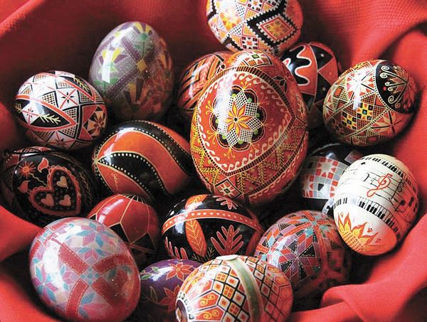 The writing of pysanky is an art form that predates Christianity in Ukraine; it was part of the pagan rites of spring. Believing that birds were the Sun God’s chosen creation, eggs were decorated with symbols of nature. The pagan practice was absorbed into Christianity, and the symbols took on new meanings. Writing pysanky can be a rather frugal art form. The raw materials are fairly common and inexpensive: eggs, beeswax, dyes, candles, and the writing tools.