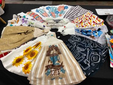 Please click on photos to expand, review notes, and contact a crafter directly. You may wish to SEND A MESSAGE for a crafter in regards to questions, custom orders, and to purchase items. Please note the crafter's Name and Page (for example: Apparel) - Thank you!